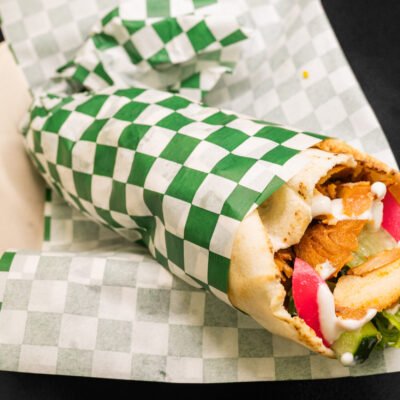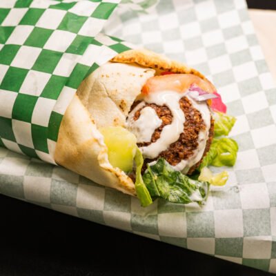 Crispy falafel wrapped with fresh salad, hummus, and house-made sauces.