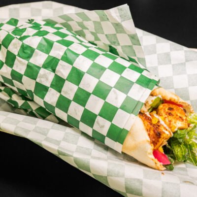 Juicy marinated chicken wrapped with fresh veggies and signature garlic...