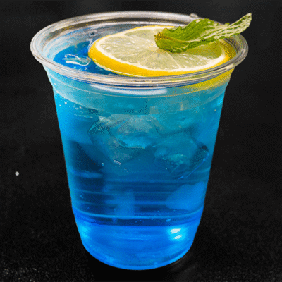 Cool blue citrus mocktail with a crisp, tangy taste.