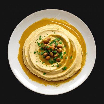 Creamy house-made hummus drizzled with olive oil and spices.