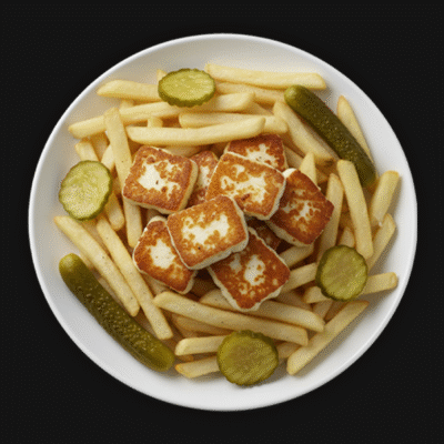 Crispy grilled halloumi cubes with bold Mediterranean flavors.